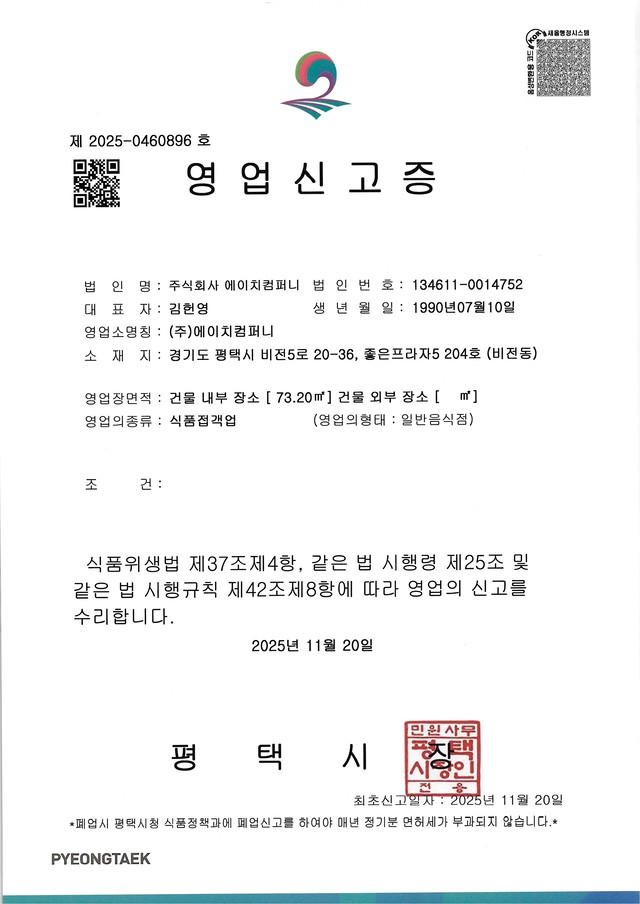 위생·안전 서류 증빙